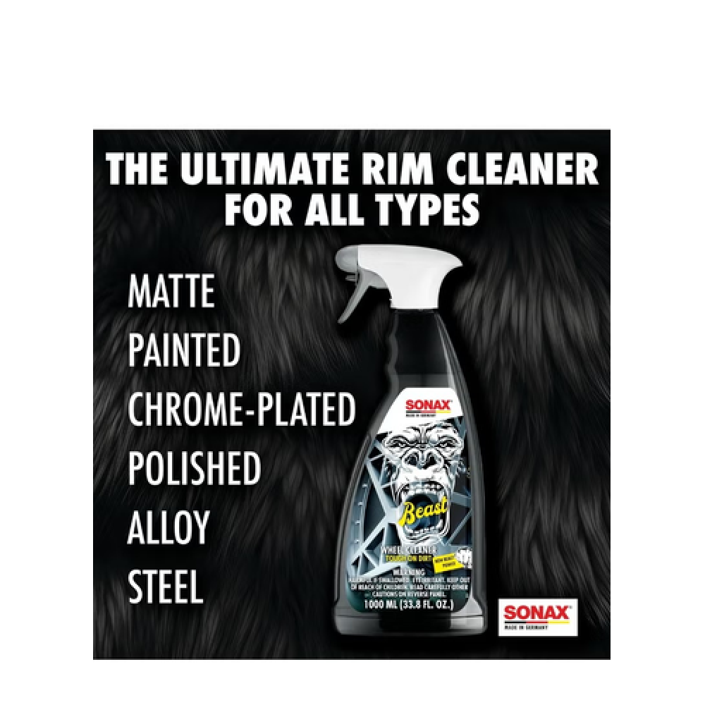 جديد من سوناكس منظف العجلات "ذا بيست" خالٍ من الأحماض وهو منظف عجلات متغير اللون وآمن لجميع العجلات يُسهّل تنظيف عجلات السيارات ويسرع من عملية التنظيف رشّه ببساطة على عجلات جافة وباردة واتركه لمدة دقيقتين أو أربع دقائق أزله بغسالة ضغط أو نفث ماء قوي من الخرطوم. طريقة سريعة لتنظيف العجلات المتسخة في دقائق معدودة عبوة اقتصادية سعة 1000 مل